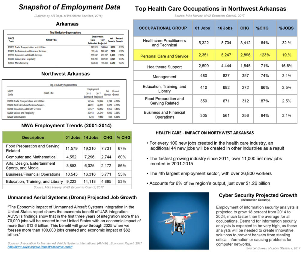 Through collaborative partnerships with the Northwest Arkansas Council and the Rogers-Lowell Area Chamber of Commerce, the district’s CTE department strives to offer high quality career programs that align with current and projected workforce demands, job growth and emerging employment trends within the Northwest Arkansas region to insure the availability of a skilled and professional workforce.