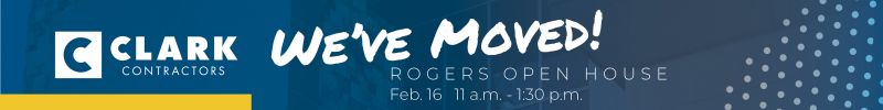 Clark Contractors will host an open house, luncheon, and ribbon-cutting ceremony on Wednesday, February 16, from 11:00 a.m. – 1:30 p.m. to celebrate the opening of their new office in Rogers. Clark Contractors previously had an office in Bentonville for over seven years and have relocated to a new space at 4300 S. JB Hunt Drive, Suite 100 in Rogers.