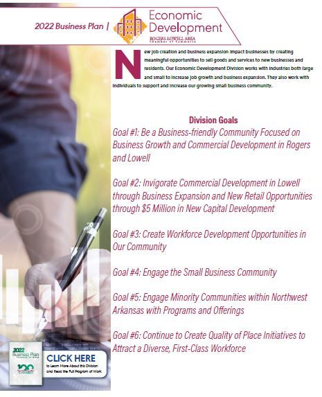 Welcome to our 2022 Business Plan. This is your quick-guide to our 3-Year Strategic Plan and its supporting 2022 Program of Work for each of the Chamber’s divisions. You’ll get to know your Chamber better and learn why our mission-work benefits you and the Rogers-Lowell Area.